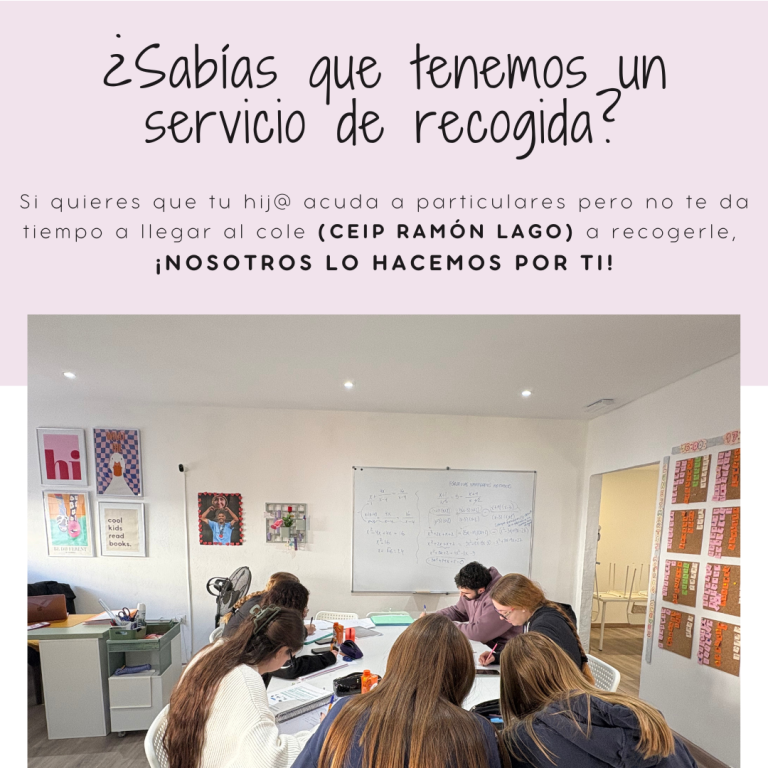 Si tus peques están apuntados a comedor y te gustaría llegar a casa ya con los deberes hechos; nosotros les recogemos y tú solo tienes que venir a la academia a por ellos a las 17:00.